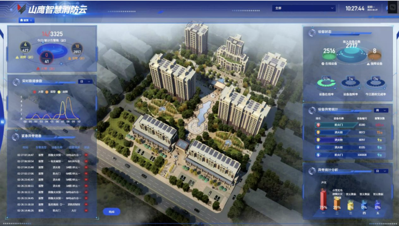 “手機發來報警,某處有著火點!”智慧消防云平臺中顯示火災現場的視頻畫面,第一時間傳輸到物業人員的手中,清楚地看到著火點的位置及情況后,物業人員根據著火點位置,緊張、有序地通過語音報警系統組織樓層群眾撤離,并第一時間進行火災報警:“您好,火災報警,**市**區**路**號…
