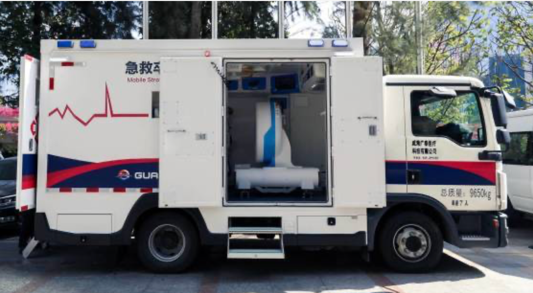 5G移動卒中單元是將移動CT和相關的檢驗儀器配備在救護車上,在5G網絡下,形成集神經癥狀學檢查、CT診斷和靜脈溶栓治療為一體的救治單元。