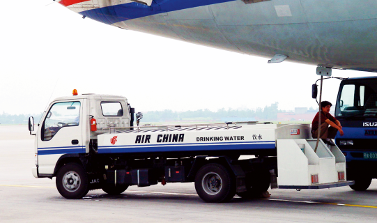 該類設(shè)備是通過車載裝置,為飛機(jī)提供清潔生活用水的自行式機(jī)場地面保障設(shè)備。該設(shè)備由汽車底盤、水箱總成、尾部框架總成、供水系統(tǒng)、液壓系統(tǒng)和電氣控制系統(tǒng)組成。
